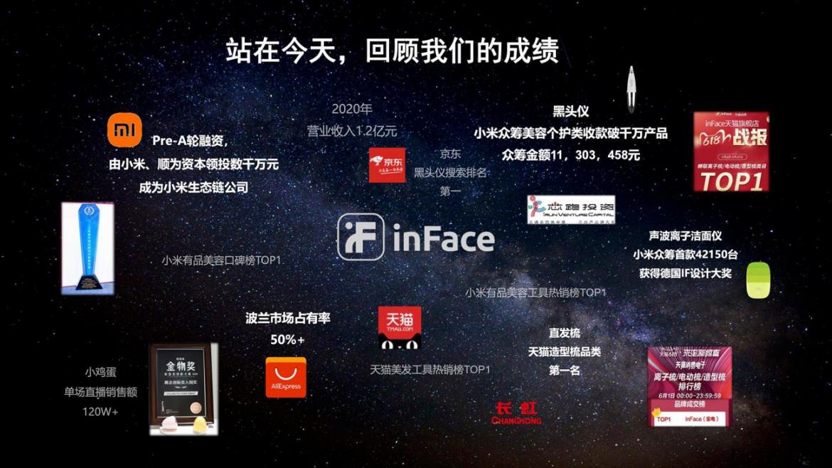 據(jù)了解, inFace創(chuàng)立于2017年6月21日,經(jīng)過(guò)近1年籌備,2018-2020年完成了第一個(gè)“三年計(jì)劃”,即實(shí)現(xiàn)成為行業(yè)有代表和開(kāi)創(chuàng)性“產(chǎn)品型公司”的戰(zhàn)略目標(biāo)。在這期間,inFace發(fā)布原創(chuàng)產(chǎn)品12款+,年?duì)I收超1億元,同時(shí)完成由小米集團(tuán)、順為資本領(lǐng)投的數(shù)千萬(wàn)元Pre-A輪融資,正式加入小米生態(tài)鏈。在小米有品、天貓和京東等國(guó)內(nèi)主流電商平臺(tái)上,核心類目例如潔面儀、黑頭儀、直發(fā)梳、美膚儀和美容儀等產(chǎn)品,inFace都是TOP級(jí)商家。