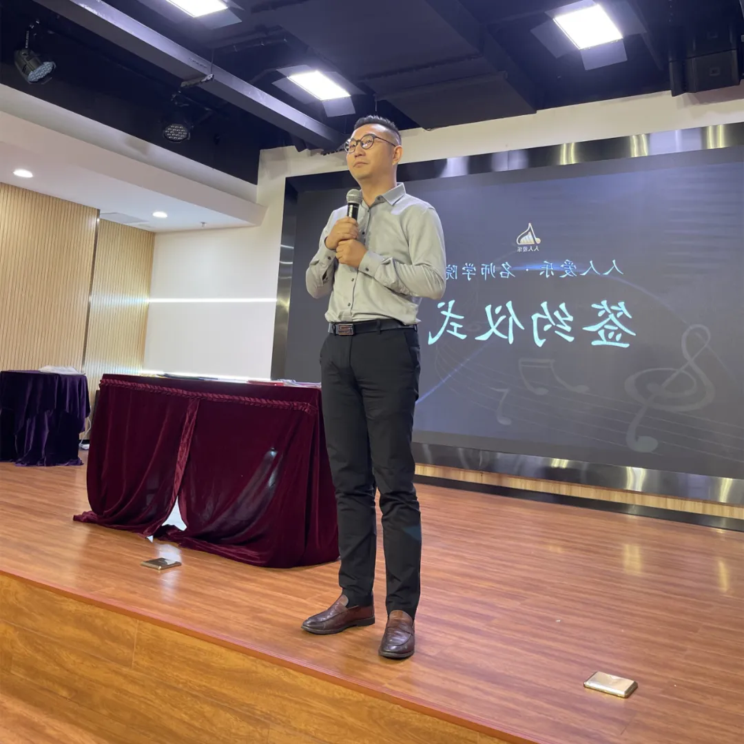 人人愛樂創(chuàng)始人張博在推介會(huì)開始時(shí)給在座的各位藝術(shù)培訓(xùn)機(jī)構(gòu)校長(zhǎng)提出了三個(gè)問題:雙減政策對(duì)藝術(shù)教育是福還是禍?當(dāng)下藝術(shù)教育的痛點(diǎn)是什么?未來藝術(shù)教育的發(fā)展新模式是什么?三個(gè)問題的答案讓人深思。