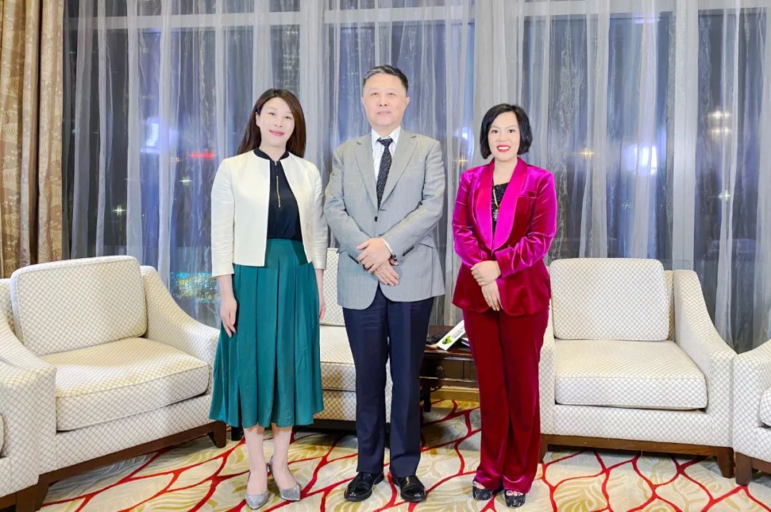 蘇州金合盛控股有限公司黨委書記、副董事長、總經理周瓊芳(左一);深圳市金融商會產業(yè)戰(zhàn)略顧問、深圳市共享金融研究院執(zhí)行院長(中);深圳市金融商會執(zhí)行會長朱雪櫻(右一)