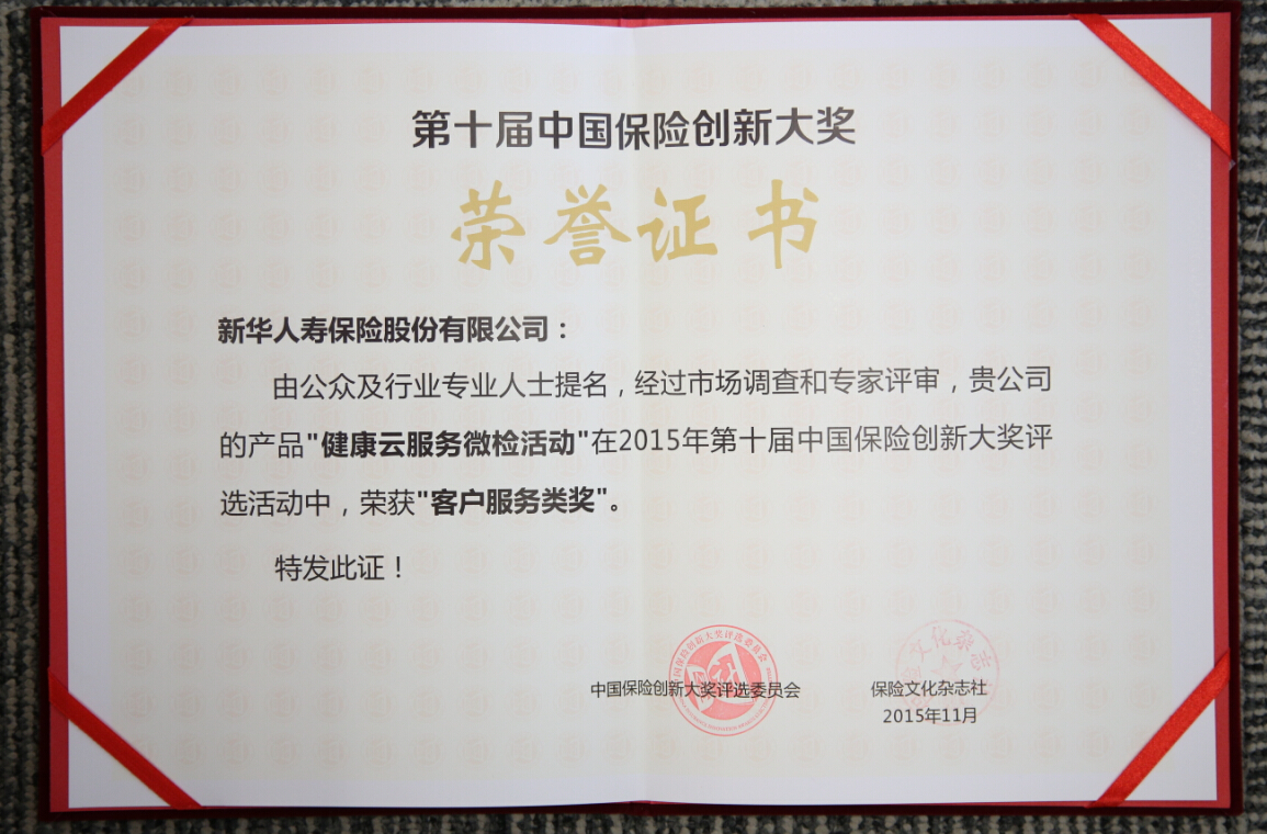 2015中國保險創(chuàng)新大獎--客戶服務類獎