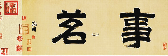 此時,這幅文徵明手書的“事茗”——蒼勁蘊藉的隸書橫幅正懸于深圳龍華六度車棧二樓善濟(jì)堂茶禪會館入門處,作為近日舉行的“事茗——東一書畫雅集”的展題。