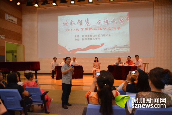 深圳新聞網(wǎng)訊(記者 楊渝嘉)為了探索如何傳承中華優(yōu)秀傳統(tǒng)文化,6月1日,南山區(qū)教育局2017年傳統(tǒng)文化節(jié)系列活動的收官之作——國學(xué)沙龍在百年老校南頭中學(xué)國學(xué)教室舉行。南山區(qū)教育科學(xué)研究中心主任余耀賢、南山區(qū)各中小學(xué)校的名師以及眾多國學(xué)愛好者們參加了本次活動,在活動中暢所欲言,共同探討國學(xué)的意義和發(fā)展前景。
