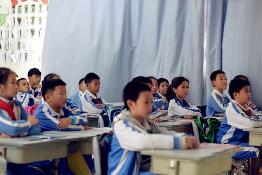 學(xué)生認真地跟著王翔云老師拍打節(jié)奏唱歌