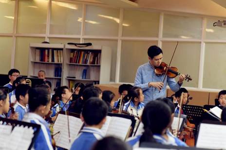在王翔云成為丹堤實驗學(xué)校的一員之后,就將自己投入到了弦樂團的學(xué)生訓(xùn)練中,每天起早貪黑地和孩子們一起訓(xùn)練,甚至利用周末時間和孩子們待在一起練習(xí)。在和孩子共同努力下,丹堤實驗學(xué)校的弦樂團在2016年龍華新區(qū)學(xué)校藝術(shù)展演榮獲一等獎,在2016年廣東提琴文化藝術(shù)節(jié)青少年弦樂邀請賽中獲得銀獎。“當(dāng)然,這些成績的獲得也離不開學(xué)校的大力支持,離不開張國明教授等高人的指點。我認為小學(xué)階段是人一生中形成德育和美育的重要時期。我們總會要求孩子們要形成良好的生活習(xí)慣,我認為倒不如讓他們覺得我們現(xiàn)在做的每一件事都是正確的,有意義的,比如在我們的課堂和訓(xùn)練中,我就會要求他們將譜臺、椅子、琴盒、琴袋等擺放整齊,現(xiàn)在他們都可以自覺地完成。”