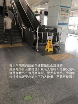 在7月2日的這條投訴中,有市民還指出了電梯停運(yùn)時(shí)間的不合理,稱木棉灣站的地鐵每逢工作日高峰期就“暫停使用”,到了平峰期就正常運(yùn)行。這也引起了其他一些乘客的質(zhì)疑。家住木棉灣站附近的李先生說:“非高峰時(shí)段電梯就能用,說明電梯本身沒問題,那為什么不開放給人多的時(shí)候用呢?”市民張先生則認(rèn)為,地鐵方面可能是為了降低維護(hù)成本,“怕人多踩壞了,要花錢花時(shí)間修唄”。但也有市民猜測電梯停運(yùn)或有安全方面的考慮?!爱吘共粫?huì)無緣無故就停了吧,可能是考慮到高峰客流量多,所以關(guān)掉不用的?!倍排勘硎?,可以接受因?yàn)榘踩珕栴}而采取的停運(yùn)措施,“走走樓梯也沒有什么。