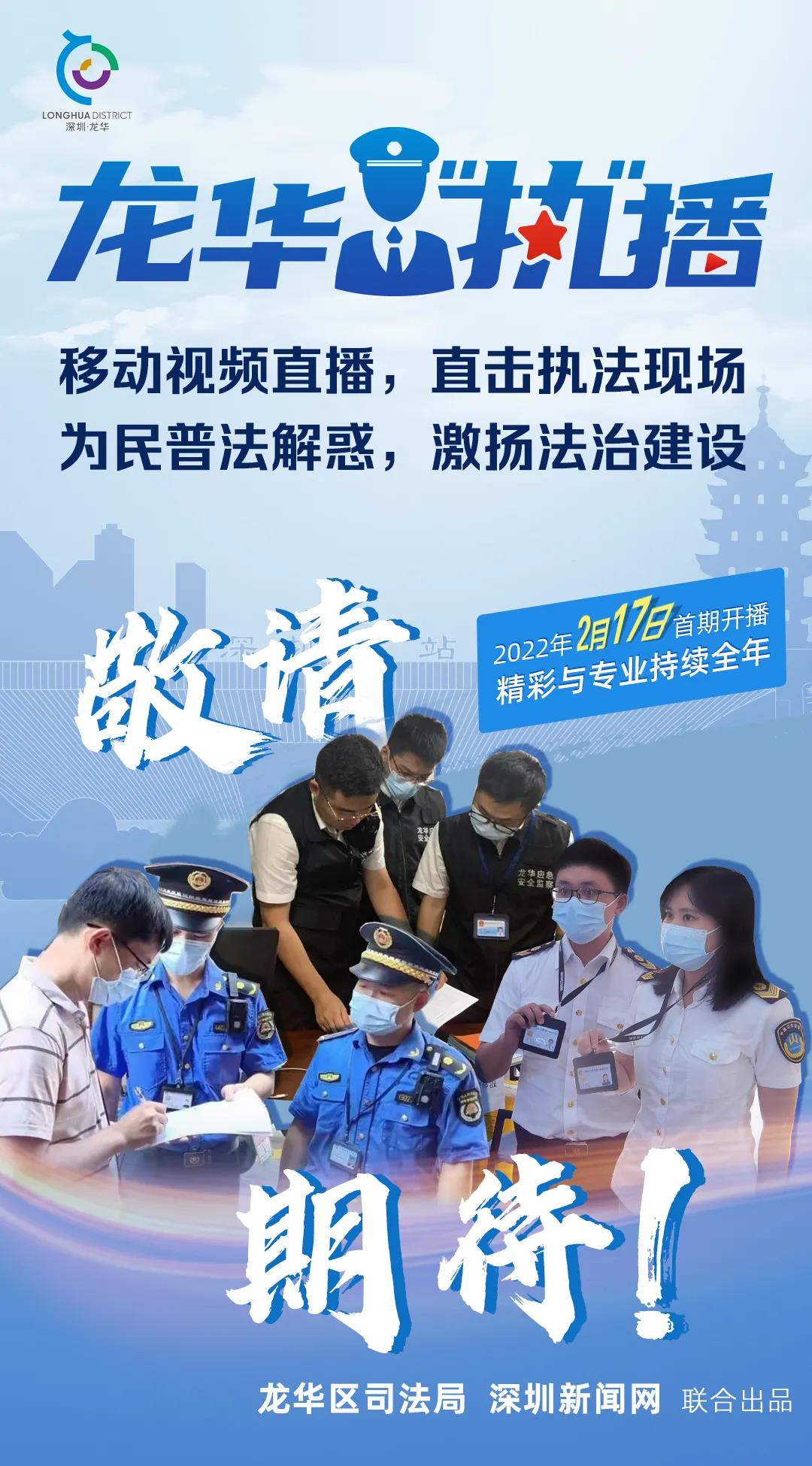 龍華“執(zhí)”播是深圳新聞網(wǎng)聯(lián)合龍華區(qū)推出的首檔直播式執(zhí)法行動欄目,是規(guī)范行政執(zhí)法行為、調(diào)動社會力量參與行政執(zhí)法監(jiān)督,豐富普法宣傳渠道的創(chuàng)新舉措,吸引70萬網(wǎng)友參與直播。2022年全區(qū)將至少開展20期“龍華‘執(zhí)’播”行動,邀請人大代表、政協(xié)委員、熱心市民等參與,執(zhí)法全程將進(jìn)行實(shí)時(shí)網(wǎng)絡(luò)直播,讓市民“零距離”參與執(zhí)法行動。