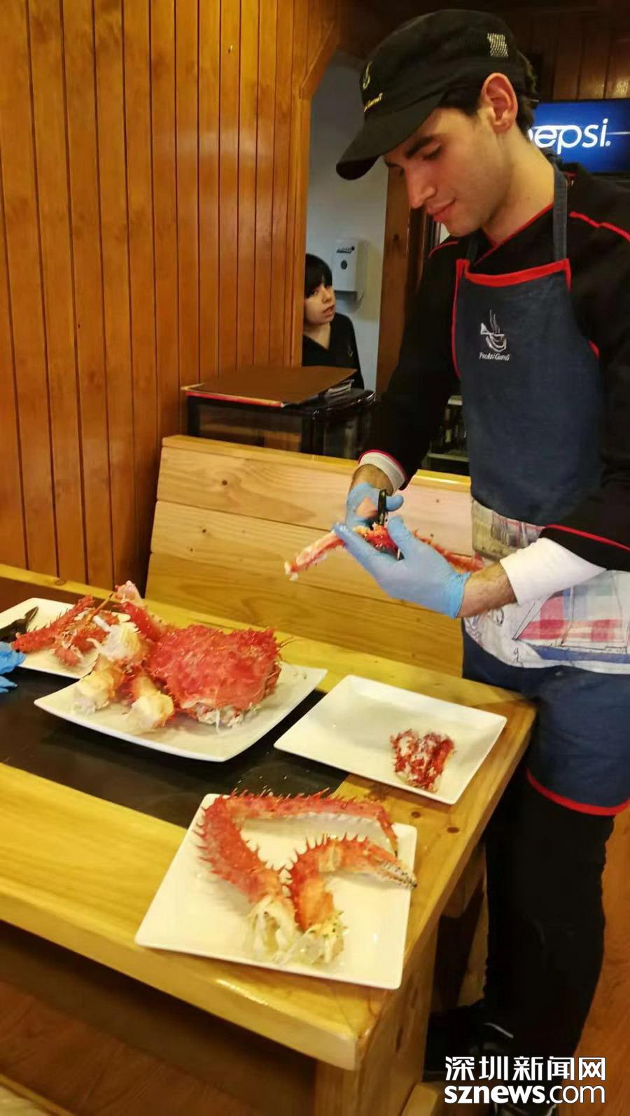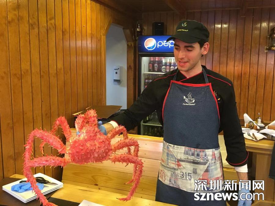 深圳新聞網(wǎng)訊 蜘蛛蟹(又名皇帝蟹)只產(chǎn)于南北兩極冰冷的海洋中,因為八條腿特長,外觀形似蜘蛛,而且觸角也比普通螃蟹多,所以被稱為蜘蛛蟹,大個的重量可達5公斤以上。智利政府規(guī)定,小于1.5公斤的不許捕撈。