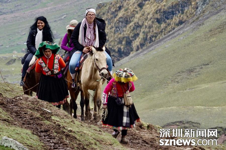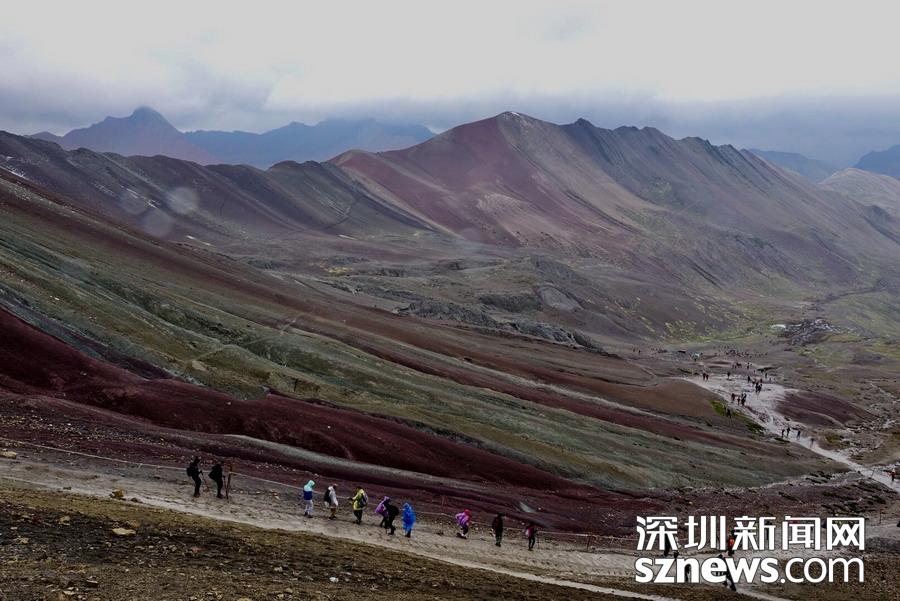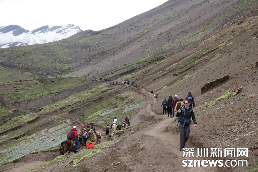 深圳新聞網(wǎng)訊 彩虹山被當(dāng)?shù)厝朔Q為維昆尼卡。深藏于秘魯庫(kù)斯科古城附近的安第斯山脈之中,多年來(lái)它一直隱藏在冰雪之下,據(jù)說(shuō)是因?yàn)闇厥倚?yīng),雪線升高露出真容,才于2016年被發(fā)現(xiàn),并迅速成為世界知名景點(diǎn)。這里可以觀賞到的還有冰川、高山草甸、羊駝以及當(dāng)?shù)厣贁?shù)民族的風(fēng)情。李仁奇攝