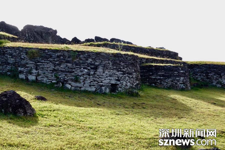 火山口邊沿有古代土著波利尼西亞人輪流值守家園的石砌地堡,他們當時在此守望什么,防止入侵者亦或試圖發(fā)現(xiàn)新的島嶼?這是至今未解之謎。李仁奇 攝