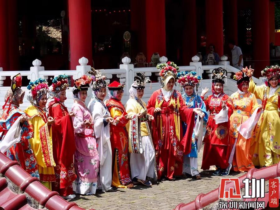 在鄭和廟,常有當(dāng)?shù)嘏阅滤沽肿庥弥袊鴤鹘y(tǒng)戲劇服裝在寺內(nèi)留影。李仁奇攝