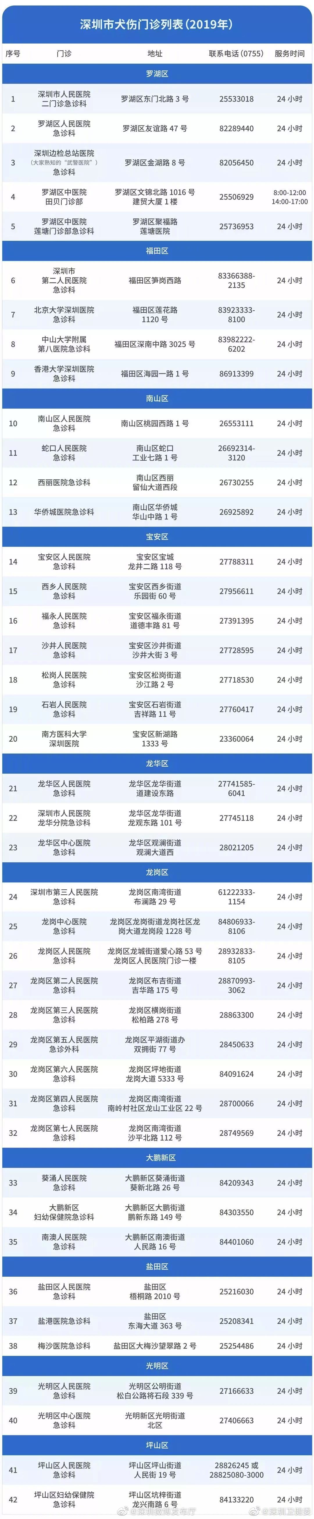 深圳可接種人狂犬疫苗和免疫制劑的醫(yī)院。(圖源:深圳衛(wèi)健委)