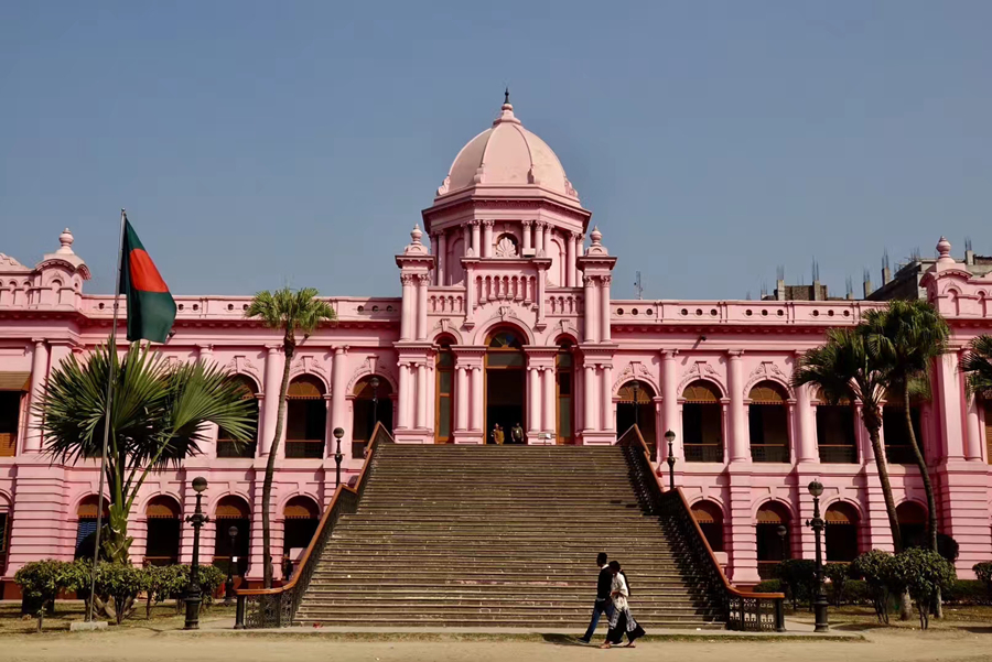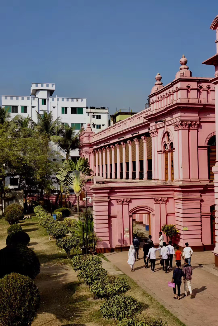 距孟加拉恒河渡口不遠(yuǎn)的地方有一座粉紅色宮殿式的豪華建筑。那是1872年一位名叫阿赫桑曼濟(jì)勒的地主在法國(guó)人留下的倉(cāng)房基礎(chǔ)上改建的私邸,后來曾在一次龍卷風(fēng)襲擊時(shí)受創(chuàng)。李仁奇 攝