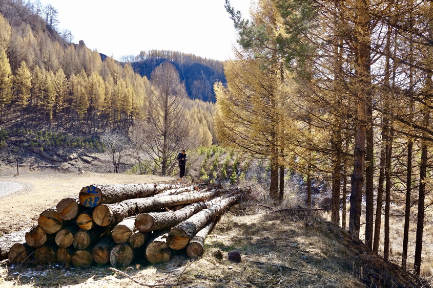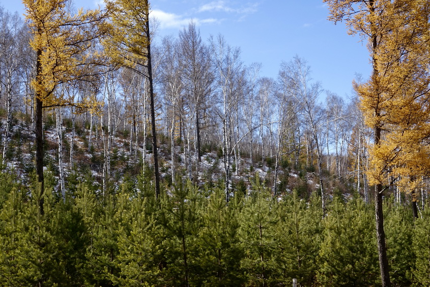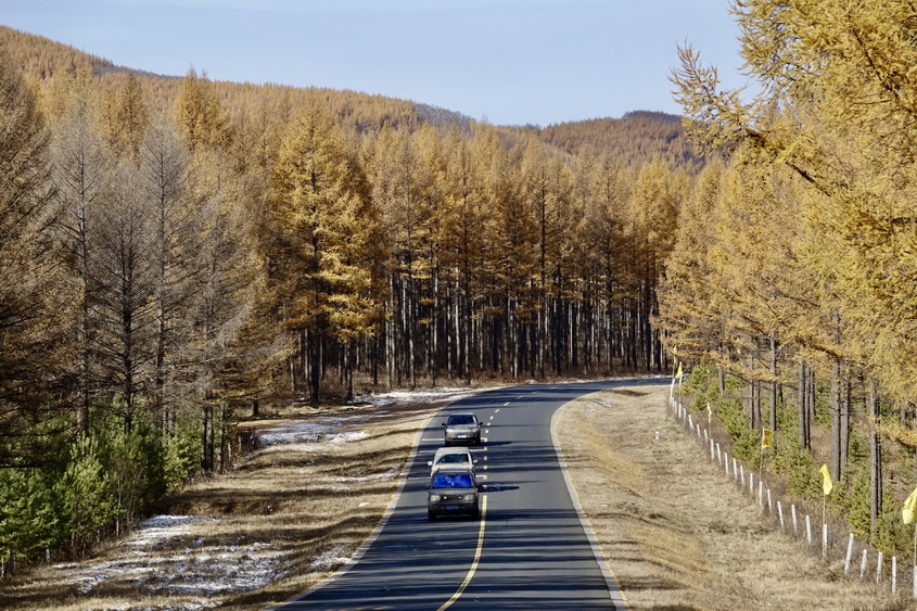 到了10月中旬,這里的草原大多已經(jīng)泛黃,樹葉也大多枯萎,但收獲季節(jié)的一片金黃仍不失為一道美景。李仁奇攝。