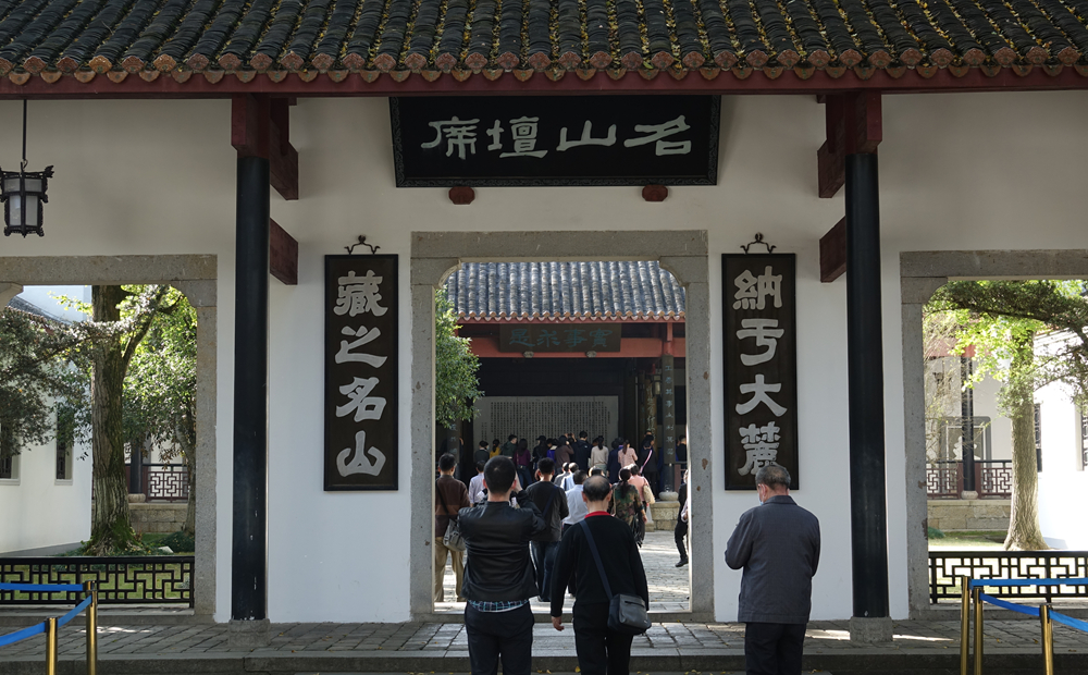 書院二門,門額正上方懸有"名山壇席"匾,兩旁有對聯(lián)"納于大麓;藏之名山",上聯(lián)出自《尚書·舜典》,下聯(lián)出自《史記·太史公自序》。李仁奇 攝