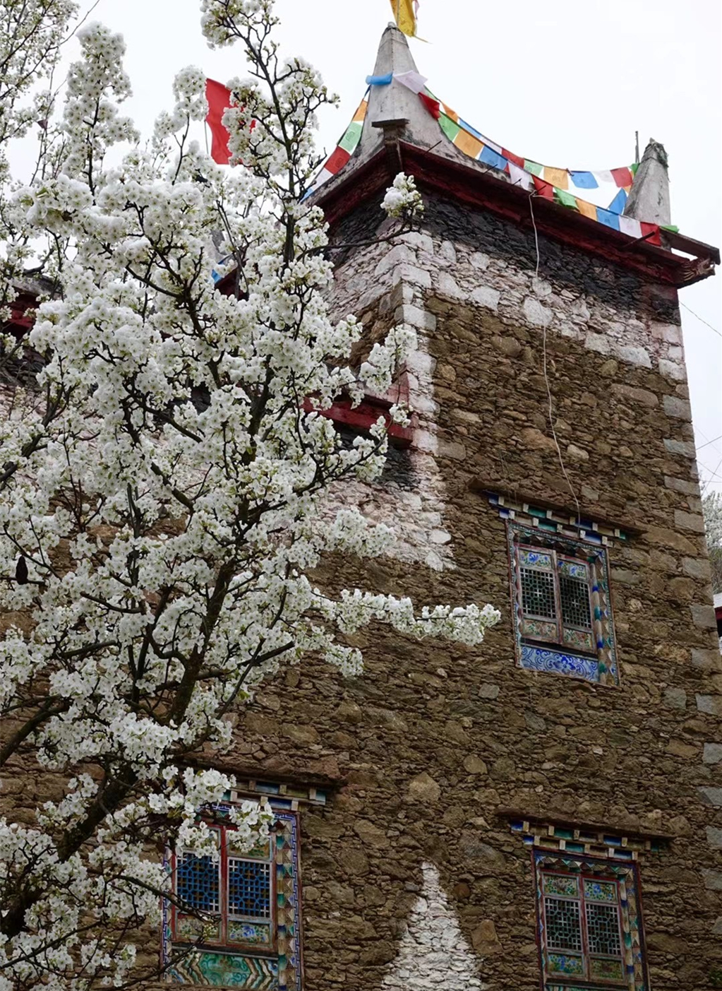 當(dāng)群山還披著皚皚白雪,春寒尚未消盡,甲居藏寨的梨花卻已悄然開(kāi)放。李仁奇 攝