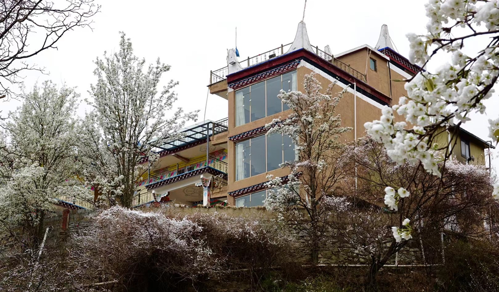 藏式民居與雪花梨花桃花相互掩映,美若仙境。李仁奇 攝