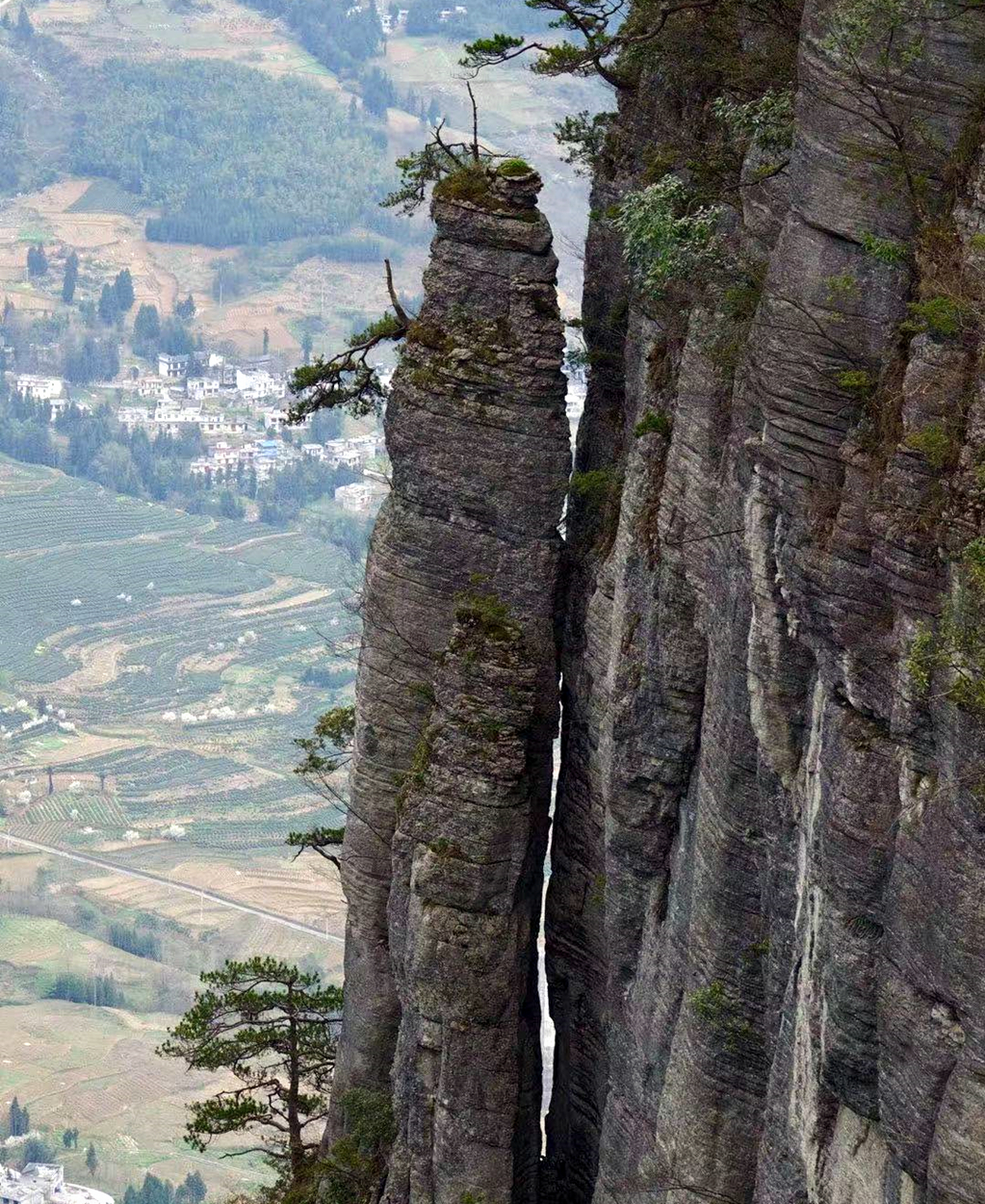 生長(zhǎng)在山崖邊的松樹,沿壁而生,枝葉向外微微傾斜。李仁奇 攝