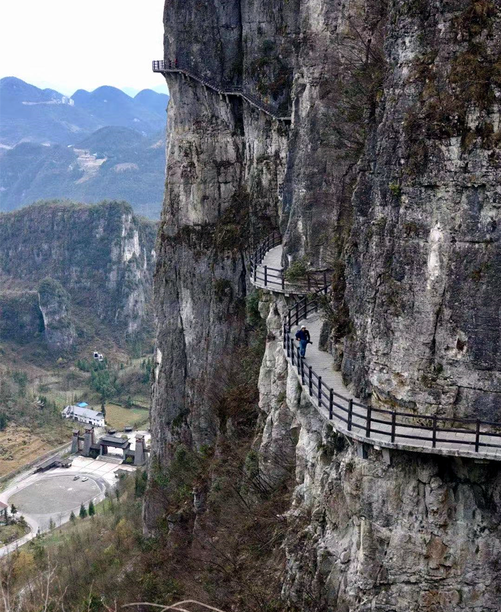 棧道橫掛在海拔約1700米、凈高約300米的絕壁間,往下看異常驚險(xiǎn),往上看則嘆為觀止。李仁奇 攝