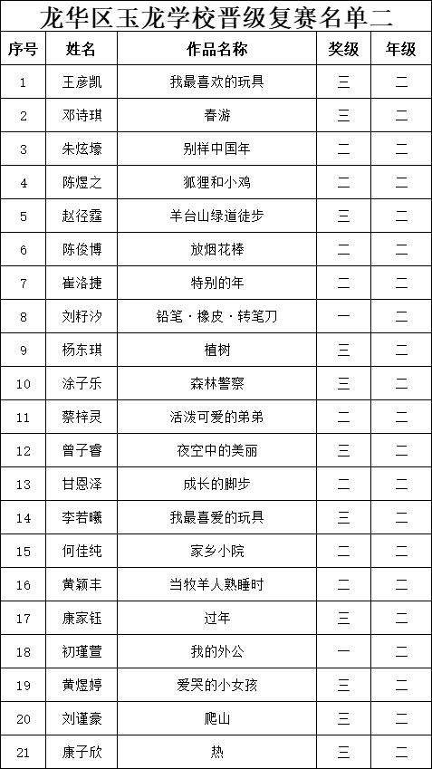 自2021年1月,活動征稿啟動以來,獲得了深圳市廣大中小學(xué)生、教師、文學(xué)愛好者的熱烈響應(yīng)積極參與,吸引了深圳百余所學(xué)校的上萬人關(guān)注報名?,F(xiàn)公布龍華區(qū)玉龍學(xué)校專場第二批晉級復(fù)賽名單如下: