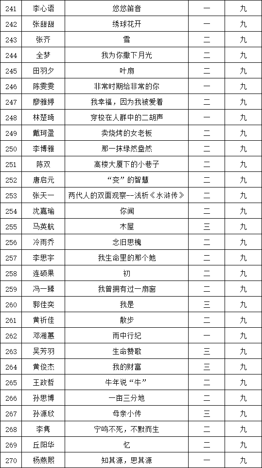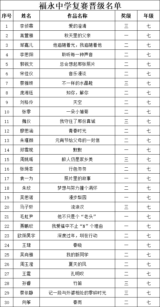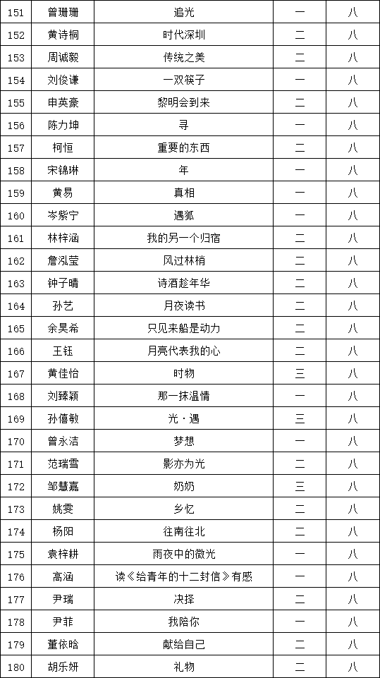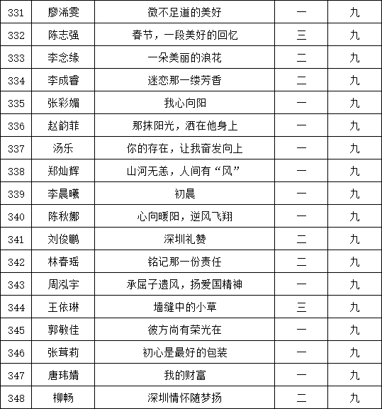 自2021年1月,活動征稿啟動以來,獲得了深圳市廣大中小學(xué)生、教師、文學(xué)愛好者的熱烈響應(yīng)積極參與,吸引了深圳百余所學(xué)校的上萬人關(guān)注報(bào)名。現(xiàn)公布福永中學(xué)晉級復(fù)賽名單如下: