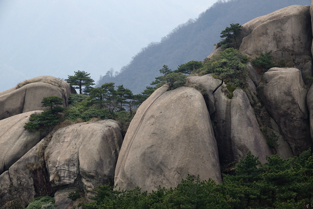 由于其隆起幅度自核心部位向周圍逐漸減小,外圍山地由硬度較花崗巖小的花崗閃長巖和沉積巖組成,易被沖刷蝕低,故整個九華山體由眾多千姿百態(tài)、高低參差的中山、低山、丘陵和山間盆地等組成。李仁奇 攝
