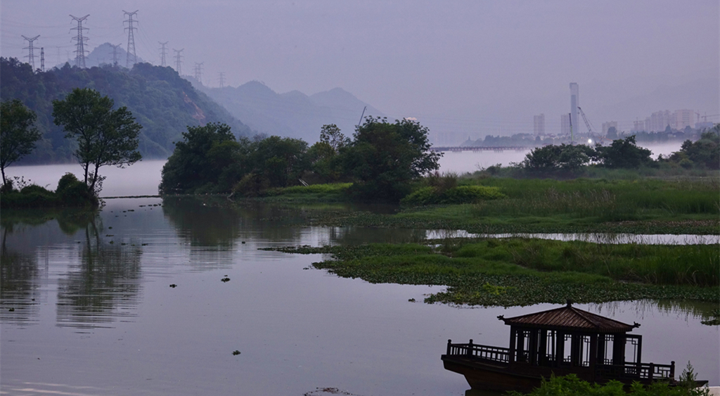 自下游興建富春江水電站后,《富春山居圖》描繪的意境雖不復存在,但這一帶淹為水庫后,兩岸青山點點,形成了“七里揚帆”等當今的嚴陵八景。李仁奇 攝