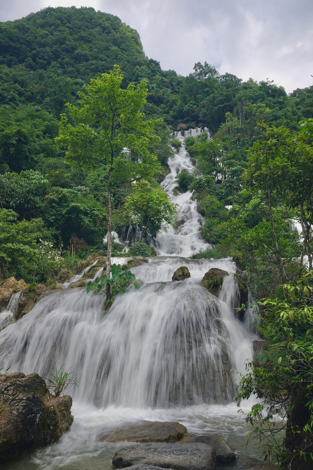 翠谷瀑布,因群峰緊鎖,群山蒼翠欲滴,故名“翠谷”。翠谷瀑布懸于群山之腰,是小七孔景區(qū)落差最大的瀑布。李仁奇 攝
