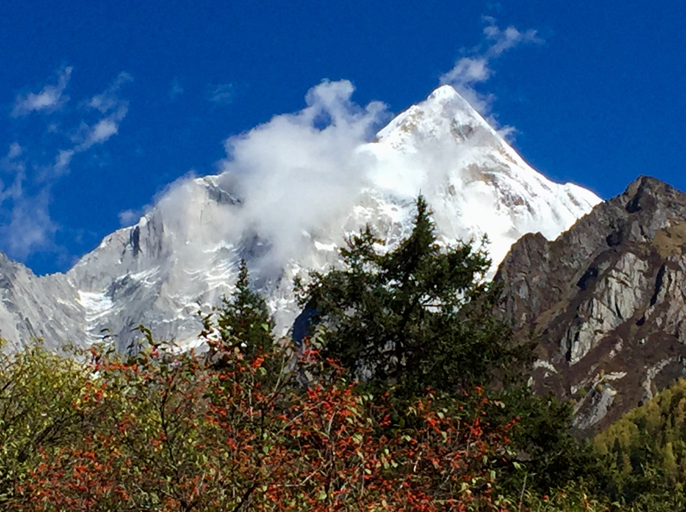 四座山峰長年冰雪覆蓋,因幺妹身材最為苗條,經(jīng)常云遮霧繞,最難窺得全貌,素有“蜀山之后”、“東方的阿爾卑斯”之稱,與“蜀山之王”貢嘎山遙遙相望。李仁奇 攝