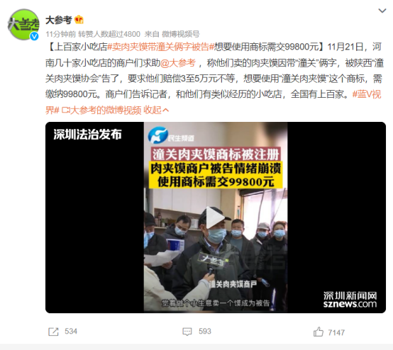 (相關(guān)報道:讓眾多店家崩潰的潼關(guān)肉夾饃商標(biāo)許可費(fèi)國家知識產(chǎn)權(quán)局回應(yīng)了)