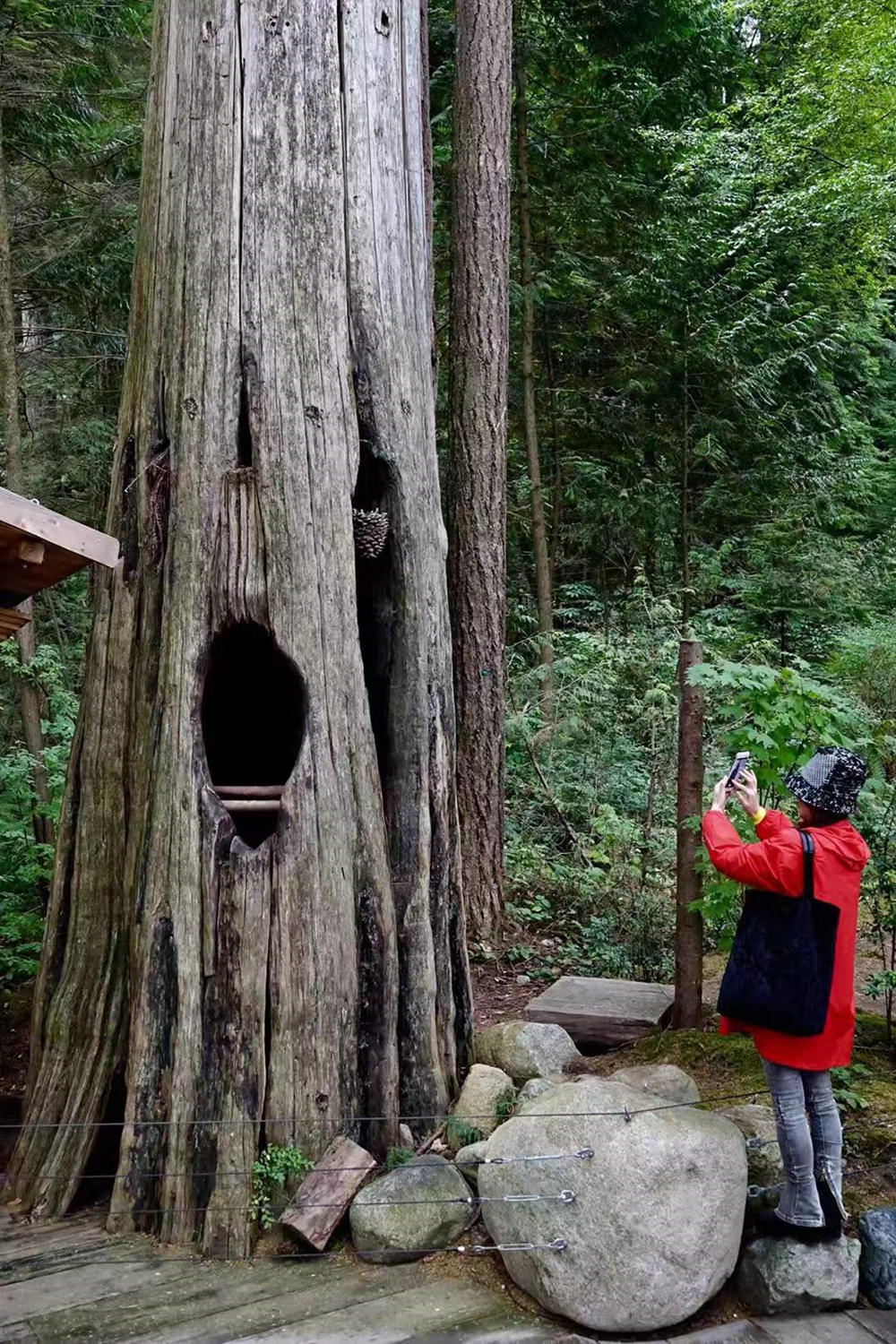 吊橋公園里面很多原始樹木的年齡比他們現(xiàn)在所屬的國(guó)度和城市的年紀(jì)還要大。直徑超過一米的樹彼彼皆是,其腰圍連兩個(gè)成年男人人都難以合抱過來(lái)。李仁奇 攝