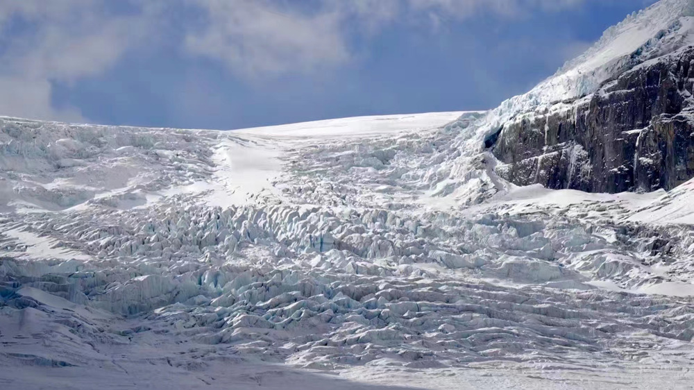 冰原的融雪由此分別流向太平洋、大西洋、北極海,實際上是由于重力擠壓從冰原底部向坡地滑動的一條雪道。李仁奇 攝