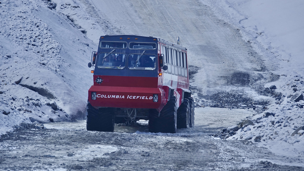 哥倫比亞冰原是北美洲最容易進入的冰川群。乘坐特別設(shè)計的“冰原探險家號”全地形旅游巴士,可以輕松踏上長達六千米的阿薩巴斯卡冰河上的冰原。李仁奇 攝