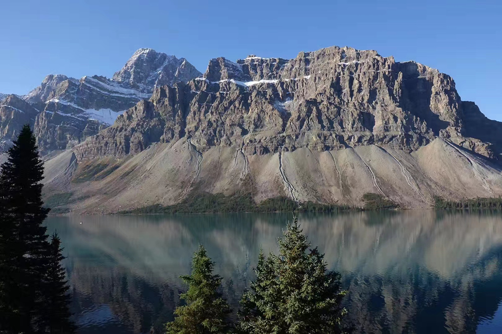 弓湖位于阿爾伯塔西部的弓峰南面,是在瓦普塔冰原作用下形成的冰川湖,湖面海拔1920米,湖泊面積3.21平方公里。因弓冰河沿岸生長的冷杉適合制作弓而得名。李仁奇 攝