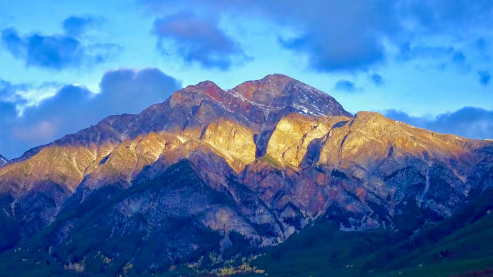 在賈斯帕國家公園所有山峰里,金字塔山的巖石是最硬的,它是由非常細(xì)微的石英沙粒和碳混合而成超硬的石英巖。李仁奇 攝