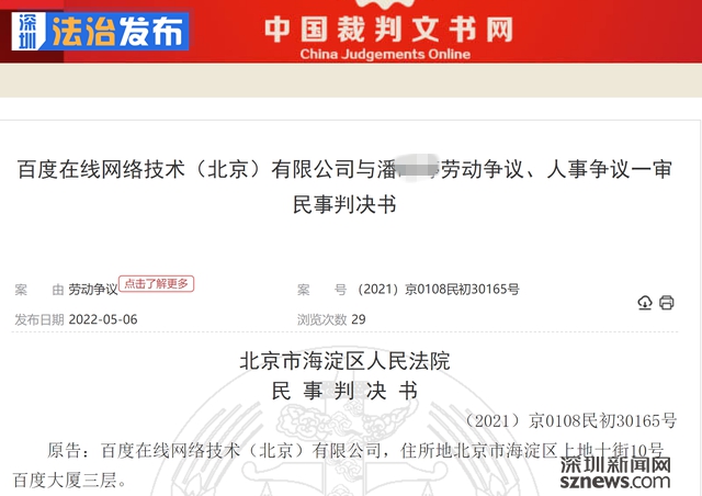 讀特客戶端·深圳新聞網(wǎng)2022年5月12日訊(記者 張玲 翁任瑩 實習生 趙薇)5月6日,中國裁判文書網(wǎng)披露的一起案件顯示,百度公司前員工潘某某離職后入職字節(jié)跳動,被百度告上法庭,理由是違反競業(yè)限制義務。北京市海淀區(qū)人民法院最終判決潘某返還百度公司為其支付的競業(yè)限制補償金214800元,同時判決潘某某向百度公司支付競業(yè)限制違約金859200元,繼續(xù)履行對百度公司的保密義務。