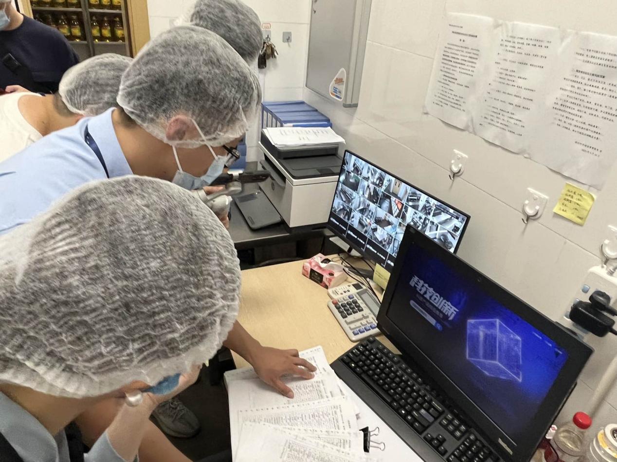 隨后,執(zhí)法人員一行進(jìn)入食堂后廚,對(duì)面點(diǎn)間、儲(chǔ)藏間、清洗區(qū)、冷凍庫等各分區(qū)進(jìn)行執(zhí)法檢查。經(jīng)查,后廚整體布局合理,其中食材存儲(chǔ)符合規(guī)定且日期均在保質(zhì)期內(nèi);留樣冰箱內(nèi)按規(guī)定保存了近期餐食樣品,留樣品名及時(shí)間標(biāo)注清晰,確保了來源可追溯;清洗區(qū)分區(qū)明確,刀具砧板按照顏色管理,有效避免了交叉感染。此外,在后廚辦公室,執(zhí)法人員查看了索證索票落實(shí)情況及日管控、周排查、月調(diào)度等相關(guān)制度管理資料,各類信息管理較完善。