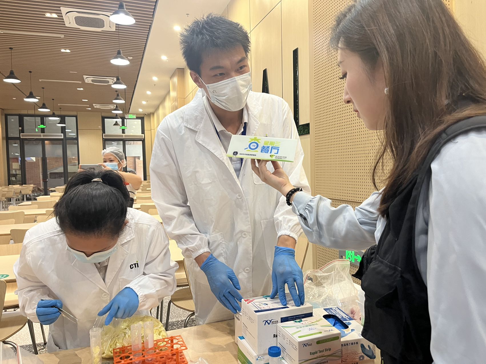 執(zhí)法行動(dòng)進(jìn)行的同時(shí),快檢人員也來到現(xiàn)場對(duì)食材進(jìn)行抽樣檢測。據(jù)介紹,本次抽樣檢查的食材樣品均合格。