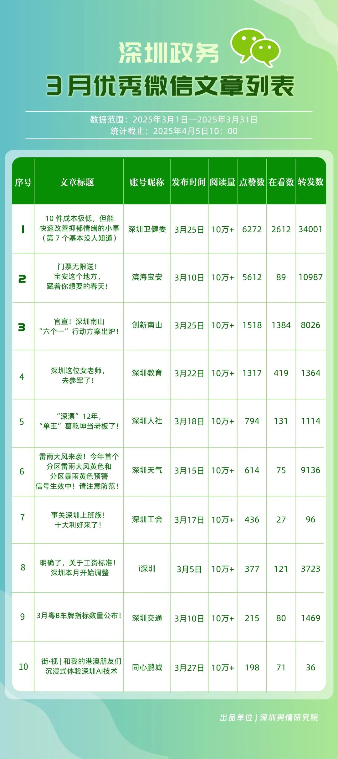 “深圳優(yōu)秀政務新媒體矩陣”3月榜單出爐,這4個矩陣排名有上升!