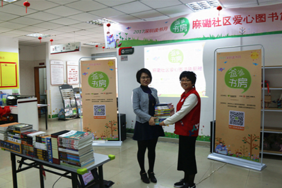 《山海經(jīng)》、《生命是什么》、《趣味物理學(xué)》······12月9日下午, 2017年深圳讀書月“爸爸書房”系列活動之愛心圖書角捐建走進(jìn)麻磡社區(qū),向麻磡社區(qū)黨群服務(wù)中心捐獻(xiàn)了近千本親子讀物并設(shè)立社區(qū)愛心圖書角。現(xiàn)場,社區(qū)居民分享了與孩子的閱讀故事,近40個家庭到場見證捐贈儀式并交流閱讀經(jīng)驗(yàn)。[詳細(xì)]