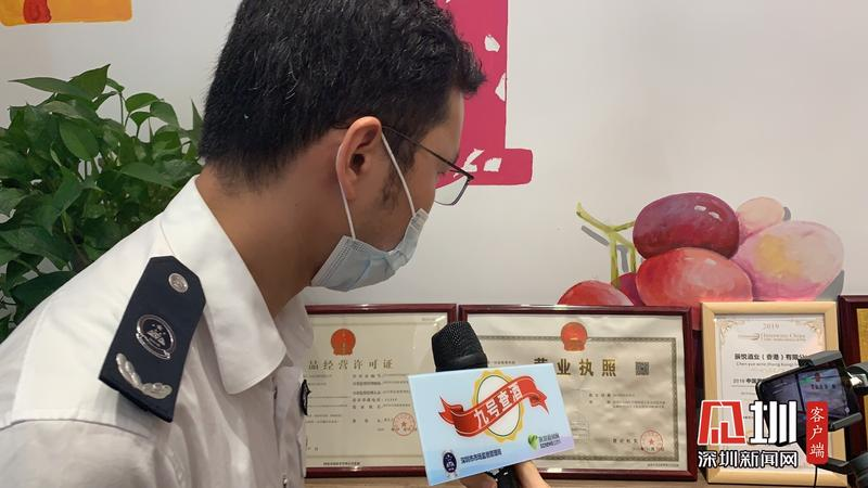 )“真酒假酒,逃不過九號查酒”。6月29日,由深圳市市場監(jiān)督管理局聯(lián)合深圳新聞網(wǎng)開展的“九號查酒”執(zhí)法行動來到了位于龍崗區(qū)華南城附近的葡悅匯,針對葡萄酒銷售企業(yè)開展經(jīng)營行為合法合規(guī)性突擊檢查。
